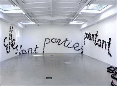 ST : What about the installation with the cotton shoes which formed the sentence “They left yet they have nowhere to go (Elles sont parties pourtant elles n’ont nulle part où aller)”. It reminds me of Henri Ibsen’s play, A Doll’s House. Is it about women’s situation?